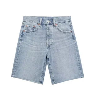 Summer Blue High-Waist Zipper Fly Denim Shorts - Casual & Chic