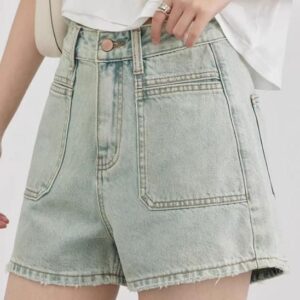 High Waist A-line Denim Shorts - Wide Leg Hot Pants for Women