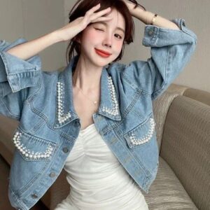 Introducing the latest trendsetter of the season – a unique combination of casual comfort and exquisite detailing. This Spring and Autumn Beaded Denim Charm Jacket is the epitome of sophistication meets street chic. With its delicate beaded embellishments and classic denim craftsmanship, it is a must-have for the fashion-forward female. Crafted for the modern woman aged between 25-34, this jacket exemplifies style without sacrificing comfort.