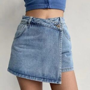 Step into the summer breeze with style and confidence in our Chic Asymmetrical Mini Denim Skirt. Tailored for the modern woman who adores a blend of casual flair and streetwise sophistication, this skirt is a must-have for your warm-weather wardrobe. Crafted with the perfect balance of comfort and couture, it’s designed to elevate your everyday style with a touch of Y2k and Harajuku influence, ensuring you stand out in any crowd.