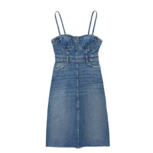 Step into summer radiance with our Elegant Blue Gradient Denim Dress, designed to capture the effortless charm of the season. This chic piece is your ticket to an elevated yet comfortable style that transitions seamlessly from brunch to an evening stroll along the boardwalk. With its delicate spaghetti straps and flattering strapless neckline, it’s a celebration of classic style with a modern twist.
