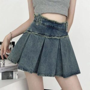 Be the first to review “High Waist Denim Pleated Mini Skirt | Vintage A-Line Streetwear”