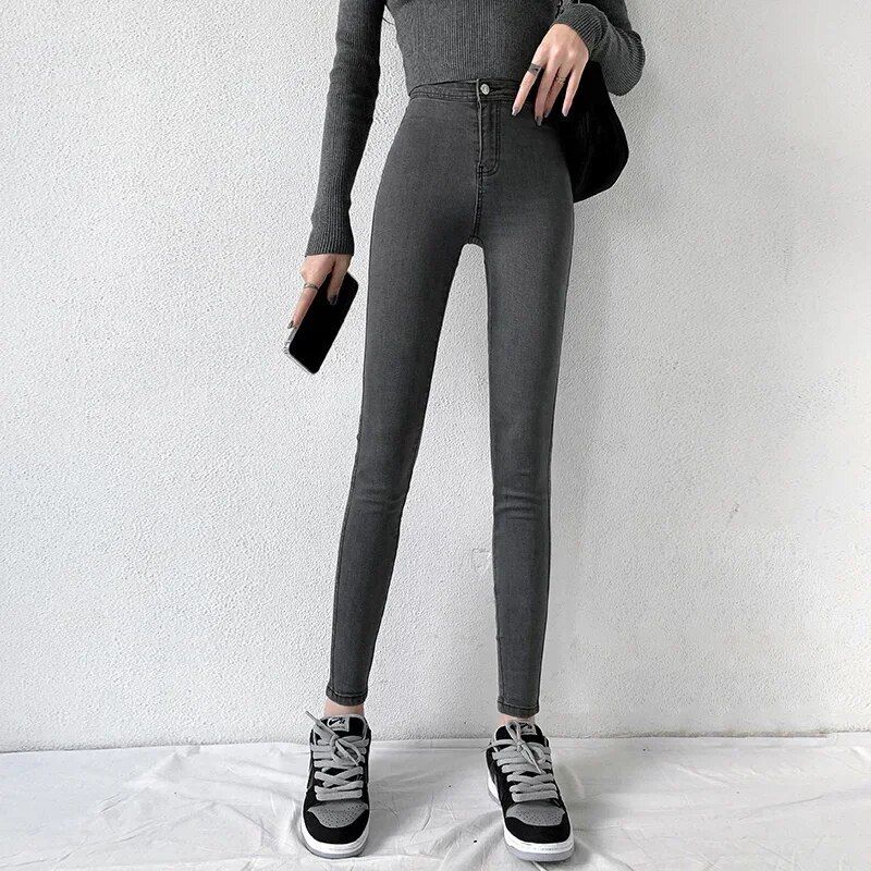Step into a blend of retro chic and modern style with our High-Waist Stretch Skinny Jeans. Designed for the woman who appreciates both fashion and comfort, these jeans are the perfect addition to your all-season wardrobe. With a nod to the iconic 90s era and an eye on current trends, these super stretch gray denim jeans are your new go-to for a sexy, high-waisted silhouette that flatters and flaunts in all the right places.