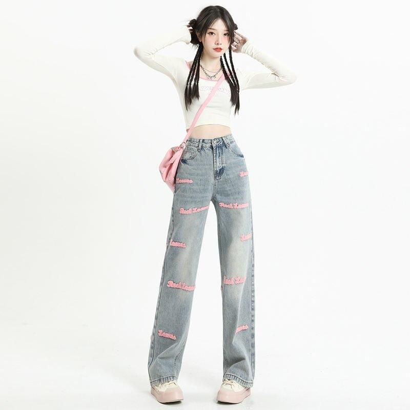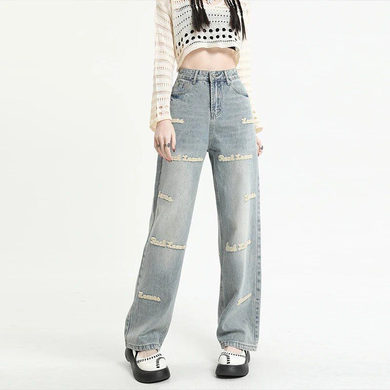 Korean High-Waisted Straight-Leg Jeans – Vintage Summer Denim
