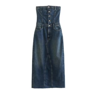 This dress isn’t just about looking good—it’s about feeling confident and comfortable in a piece that’s been thoughtfully designed for the young and stylish. The solid pattern and high-quality fabric make it a durable addition to your wardrobe, while the strapless design and silhouette keep it on-trend and distinct. When you choose our denim maxi dress, you’re investing in a piece that will stay stylish year after year.
