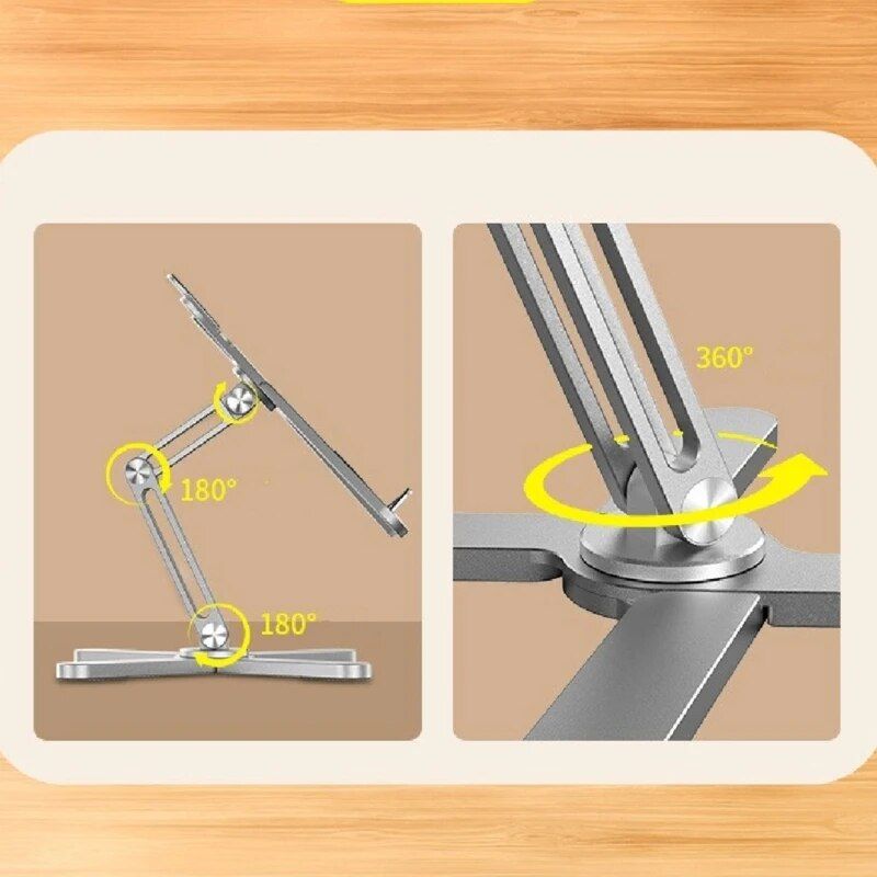 The heart of this laptop holder lies in its innovative design. Crafted from premium aluminum alloy, it boasts a sturdy yet lightweight build, perfect for the on-the-go lifestyle. The stand’s ability to rotate 360 degrees allows for effortless adjustment to your preferred viewing angle. Accommodating laptops ranging from 11 to 16 inches, it caters to a wide array of devices, ensuring a perfect fit for your laptop.