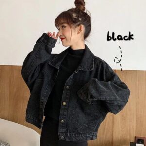 What makes this jacket special is its ability to seamlessly integrate into any middle-aged woman’s closet, providing an instant update to your personal style. Its Korean fashion influence ensures you’re at the forefront of current trends, while the cropped cut adds a modern twist to the classic denim look. It’s not just a jacket—it’s a statement of style and confidence.