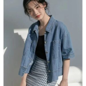 This denim shirt shines brightest in the summer and spring months. Its cropped length makes it ideal for pairing with high-waisted skirts or jeans, embodying the Ulzzang style. Perfect for ages 16-28 and beyond, it’s designed to suit all occasions – from casual college days to weekend getaways. The shirt is adaptable to both daily wear and special outings where making a cool, effortless statement is the goal.