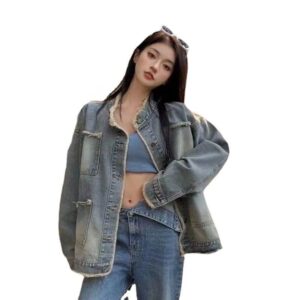 $25.49 – $26.09Price range: $25.49 through $26.092023 Retro Chic Denim Jacket - Women's Loose Fit Cardigan Top